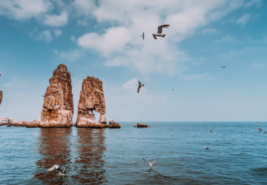 這里是威千公里幸福海岸線(xiàn)的起點(diǎn),祝福人們?cè)谶@里開(kāi)啟幸福之門(mén),踏上幸福岸線(xiàn),沐浴在幸福的海洋里。后乘車(chē)赴榮成。榮成市位于山東半島最東端,這里風(fēng)光旖旎、冬暖夏涼、春溫秋爽,海洋資源極其豐富,是一座美麗的濱海城市。約1小時(shí)車(chē)程。贈(zèng)送游覽5A級(jí)風(fēng)景區(qū)【成山頭】(門(mén)票已含):是中國(guó)大陸伸向海洋的最東端,古時(shí)被稱(chēng)之為“天盡頭”, 2005年被《中國(guó)國(guó)家地理》評(píng)為“中國(guó)最美的八大海岸”大陸第一名。游覽【好運(yùn)角景區(qū)】景區(qū)獨(dú)具特色,三面環(huán)海,一面接陸,海天一色,風(fēng)景極其壯美,與韓國(guó)隔海相望,是中國(guó)最早看見(jiàn)海上日出的地方,自古就被譽(yù)為"太陽(yáng)啟升的地方",后歷代帝王均有幸成山拜日神之舉,這里是名副其實(shí)的金烏之巢、太陽(yáng)之家,遠(yuǎn)觀(guān)海驢島,天鵝湖,宛如仙境,讓人流連忘返。而后參觀(guān)【福如東海文化區(qū)】景區(qū)自然地貌宛如一只浮在海上的巨大葫蘆,寓意“福祿雙全”。 景區(qū)內(nèi)風(fēng)光獨(dú)特,建筑風(fēng)格迥異,山水相映,群芳爭(zhēng)艷,島湖相連,魚(yú)躍鷗翔,人們?cè)诖思瓤梢匀枷闫砀,又可蕩漿戲水,也可趕海拾趣,還可以品嘗海珍、抒發(fā)情懷,在碧海藍(lán)天之間暢游,在樂(lè)中領(lǐng)略“福”的真諦,置身其中,陶然于世外!隨后入住倪氏海泰度假酒店,酒店毗鄰海水浴場(chǎng),依山環(huán)海,環(huán)境優(yōu)美。整個(gè)酒店建筑融于大海、沙灘、松林、湖泊之中。